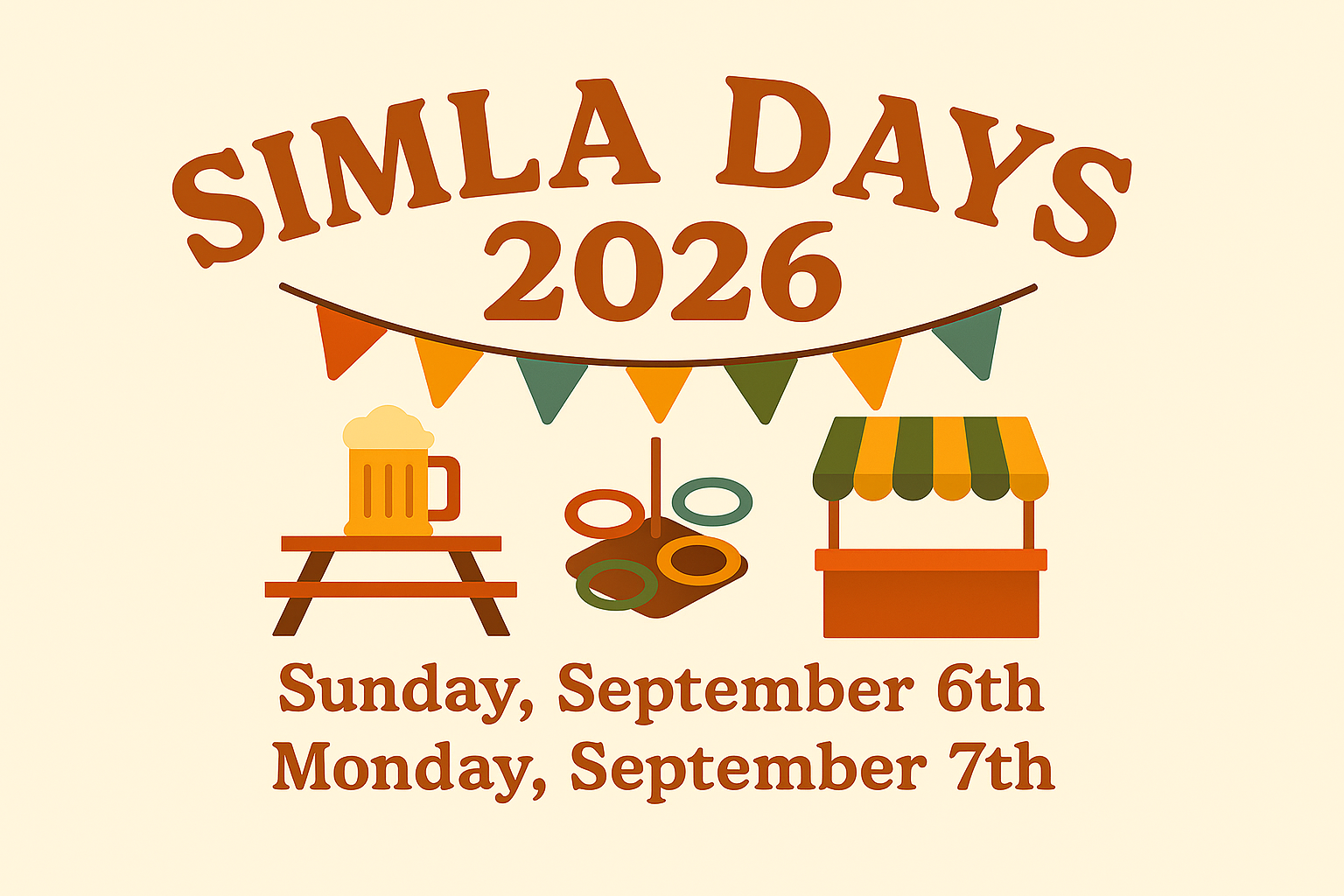 Don’t miss out on a great time, check out the line up for Simla Days 2026 by clicking the link to the flyer below and take a look at the Simla Days to see where all the activities are and a list of vendors who will be at Simla Days 2026.
